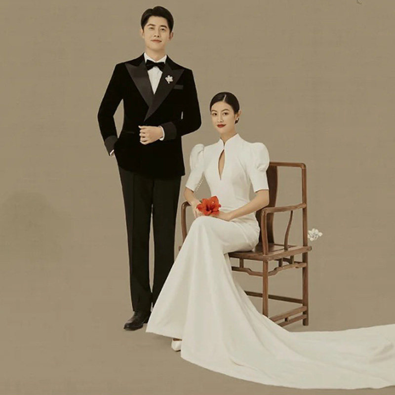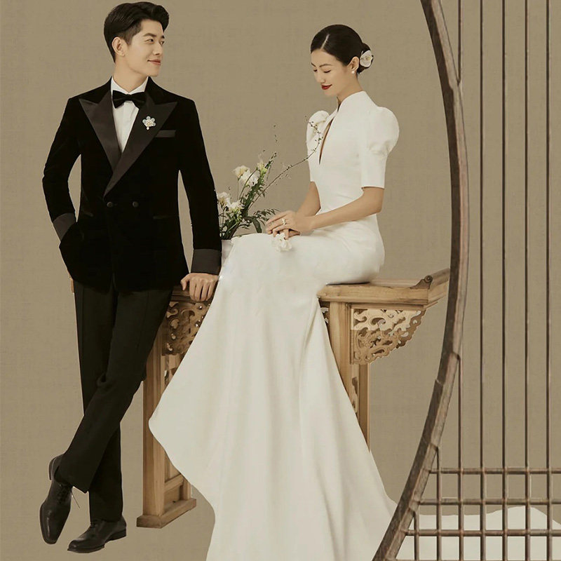 Fish tail wedding dress 2022 new bride French retro - tail temperament out to welcome the satin dress summer