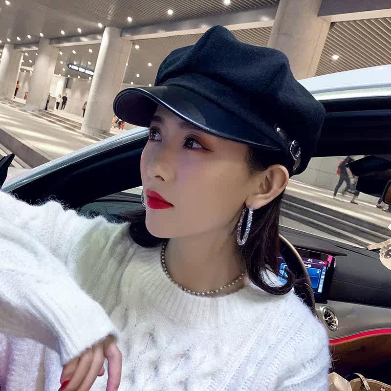 Octagonal hat women's autumn and winter beret Korean version of the ins all-match British retro newsboy peaked hat female net red fashion