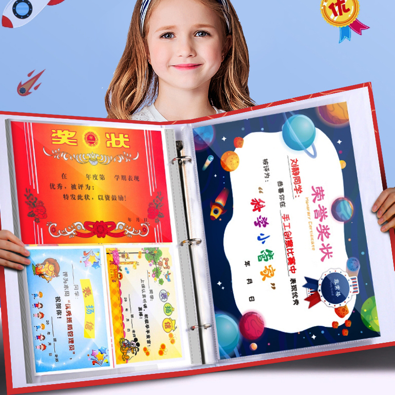 A4 cartoon large certificate collection book a5 boys and girls primary school students junior high school children's certificate of honor test paper finishing folder collection book transparent loose-leaf inset piano score album album storage