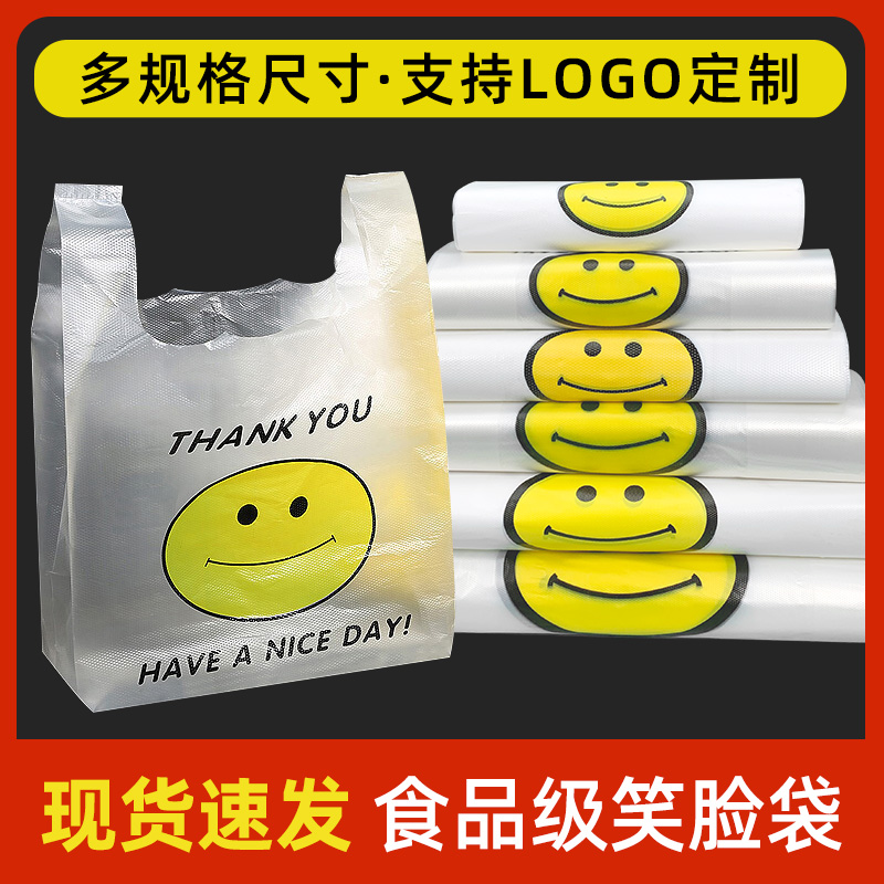 Smiley food grade plastic bag custom printing logo shopping portable disposable delivery packaging bag wholesale