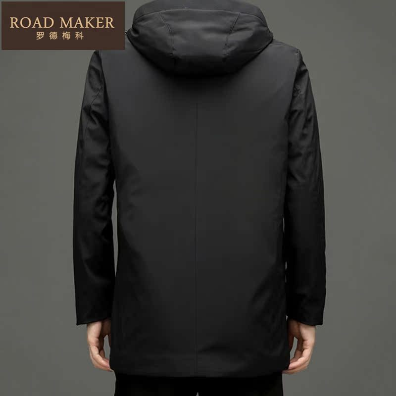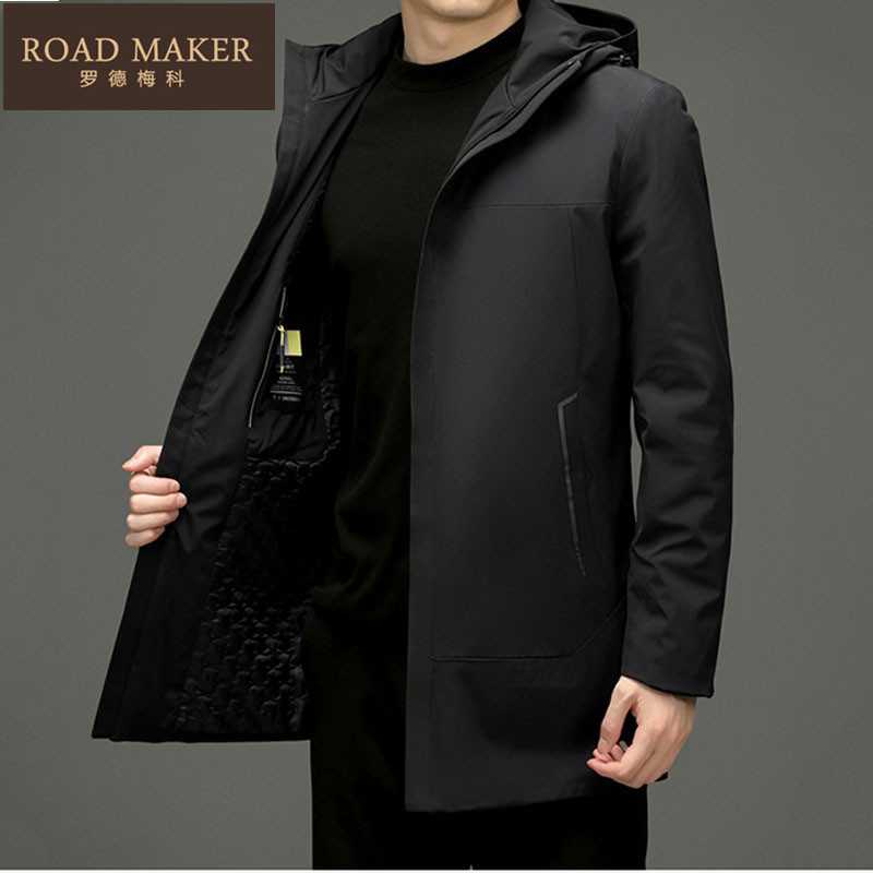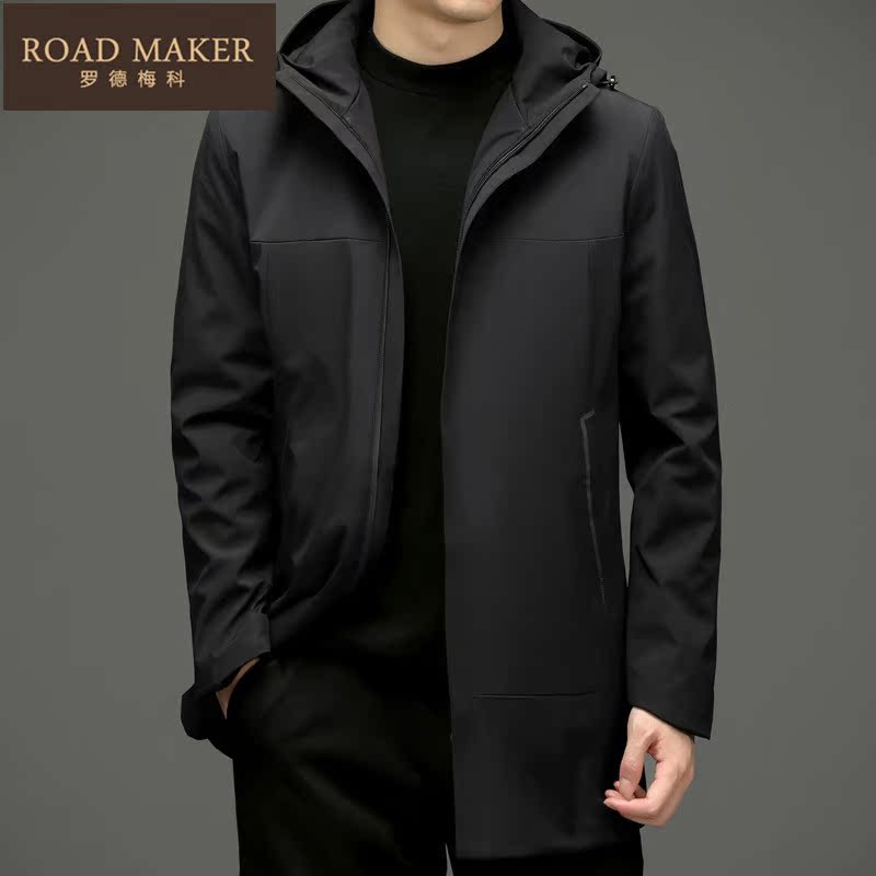 ROADMAKER2021 winter men's medium long version of the wind coat with cap windcoat jacket casual handsome gas plus cotton men