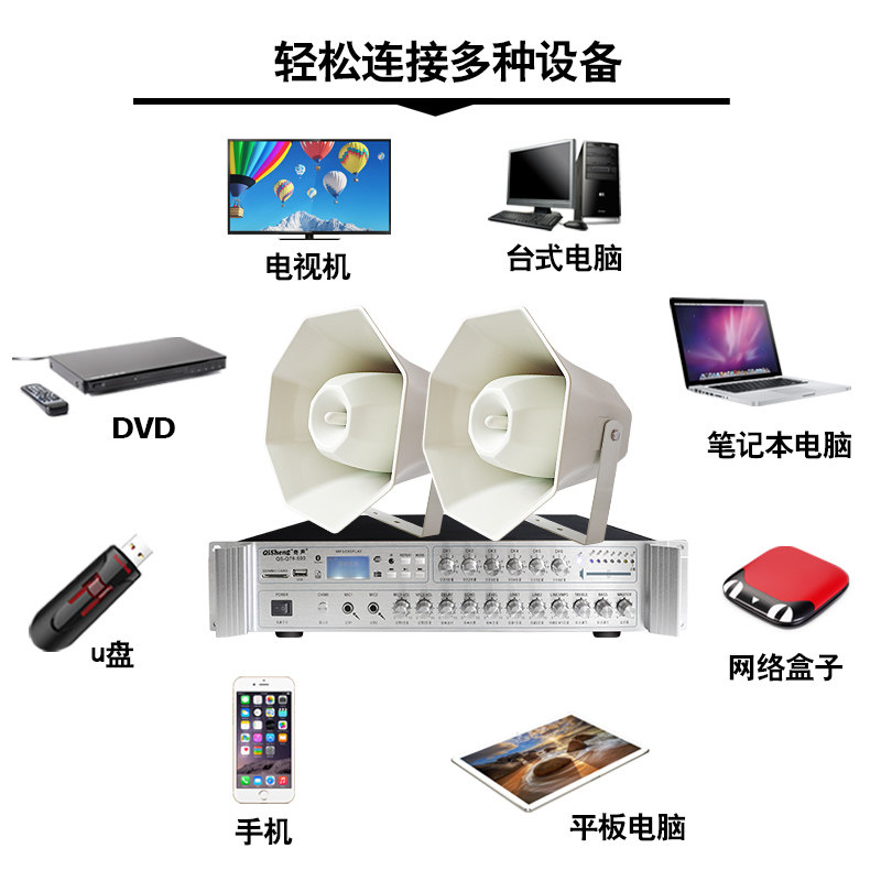 2 200W horns + 500W power amplifiers The volume spreads far away