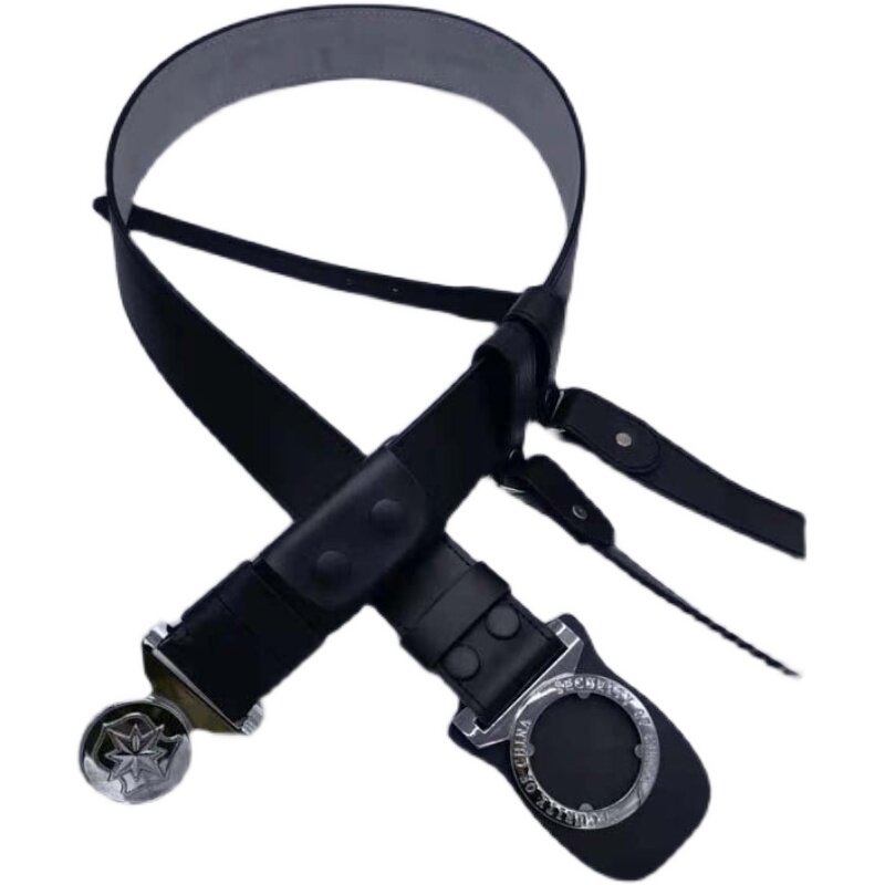 New cow leather security on duty external belt armed belt 5CM inclined back type double ring male and female pants belt