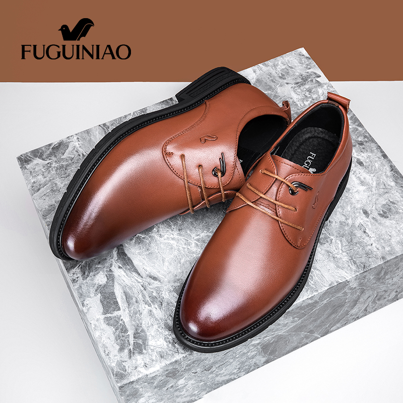 Rich bird men's shoes autumn leather English wind soft sole business dress trend men married groom shoes