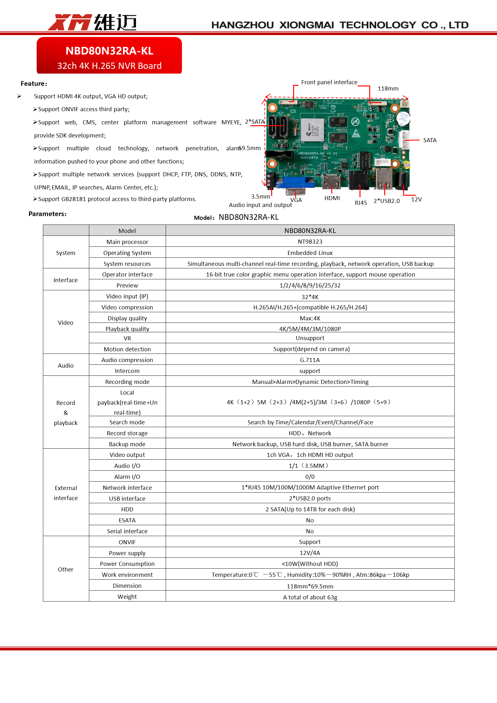 NBD80N32RA-KL 32ch 4K H 265 NVR Board network video recorder motherboard 8 million pixels