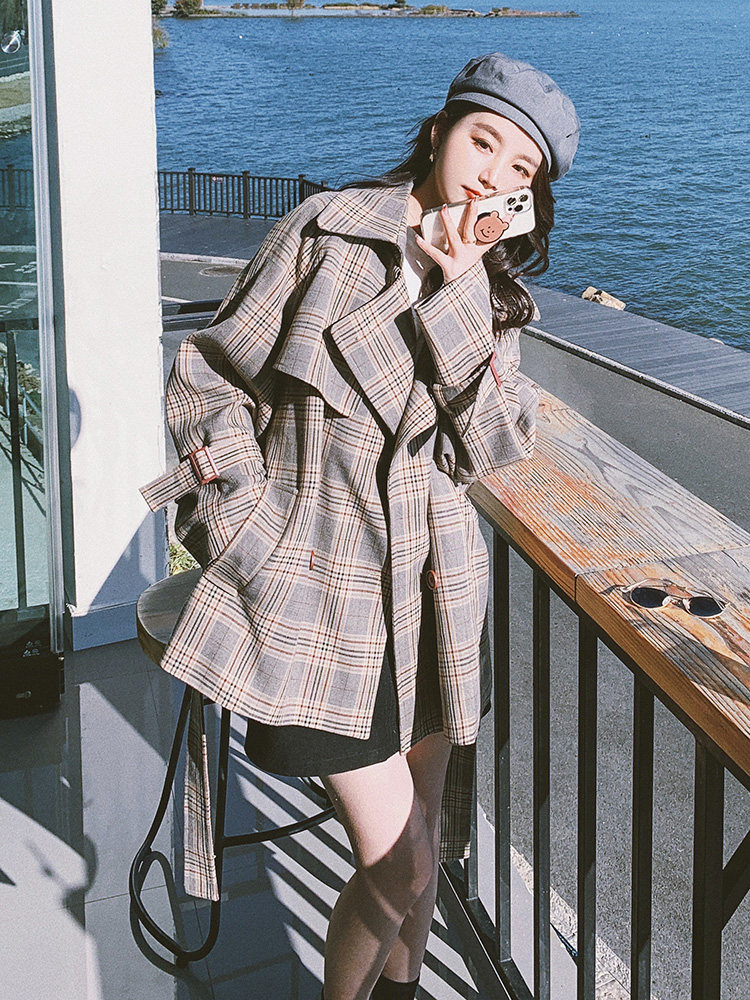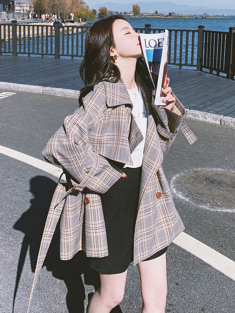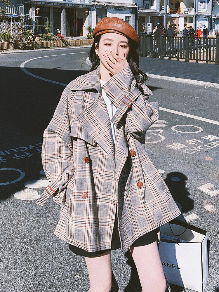 Sandro Queen2021 early autumn new retro plaid coat women's short high-end casual British style coat