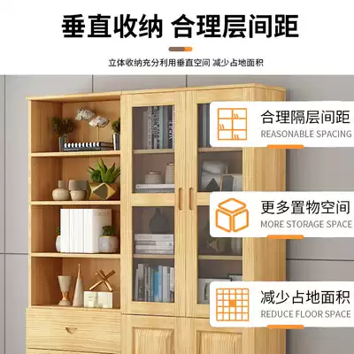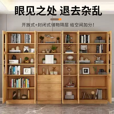 Full solid wood bookcase bookcase combination against the wall with glass door, floor-to-ceiling display cabinet display cabinet log storage cabinet