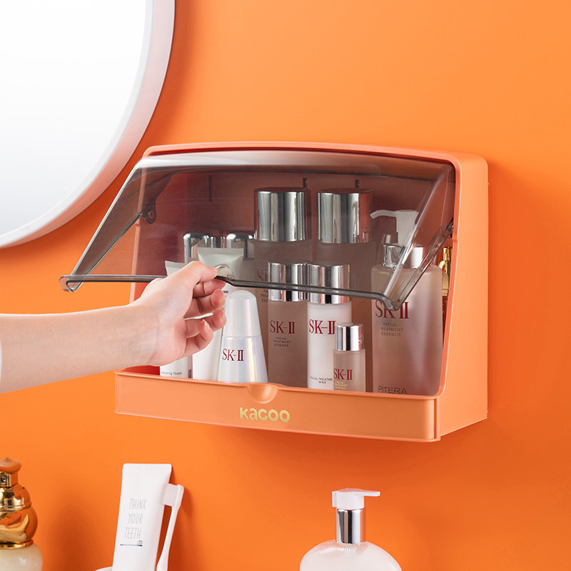 Cosmetic storage box wall-mounted non-punching dust-proof household large-capacity bathroom wall-mounted bathroom rack