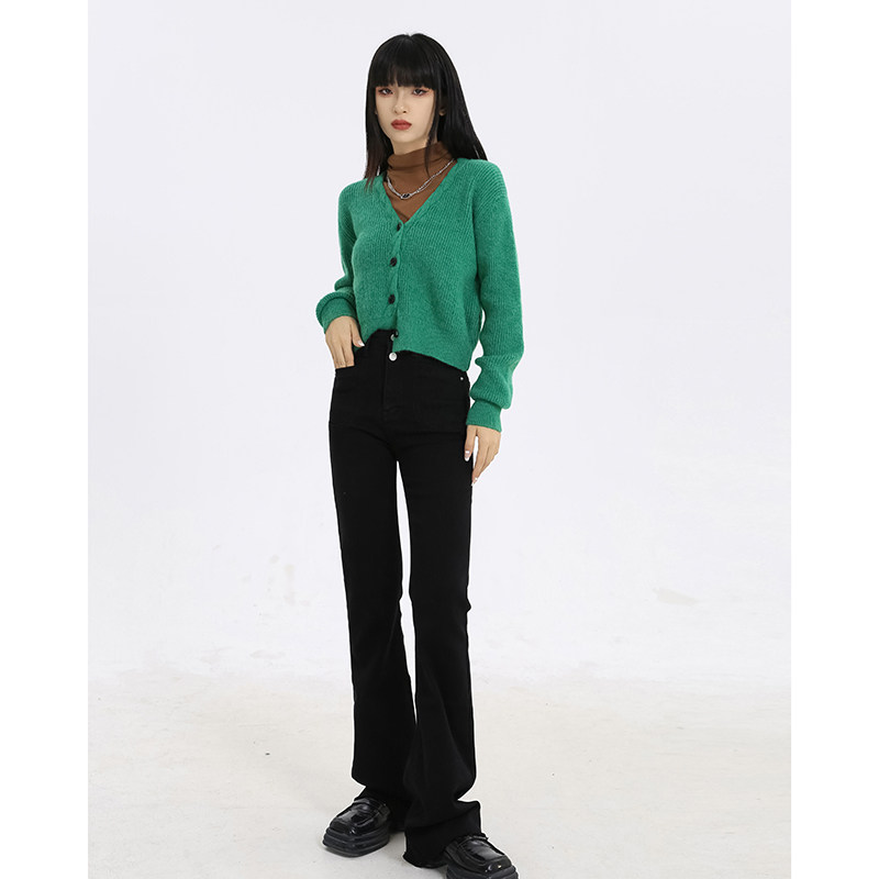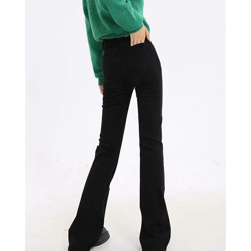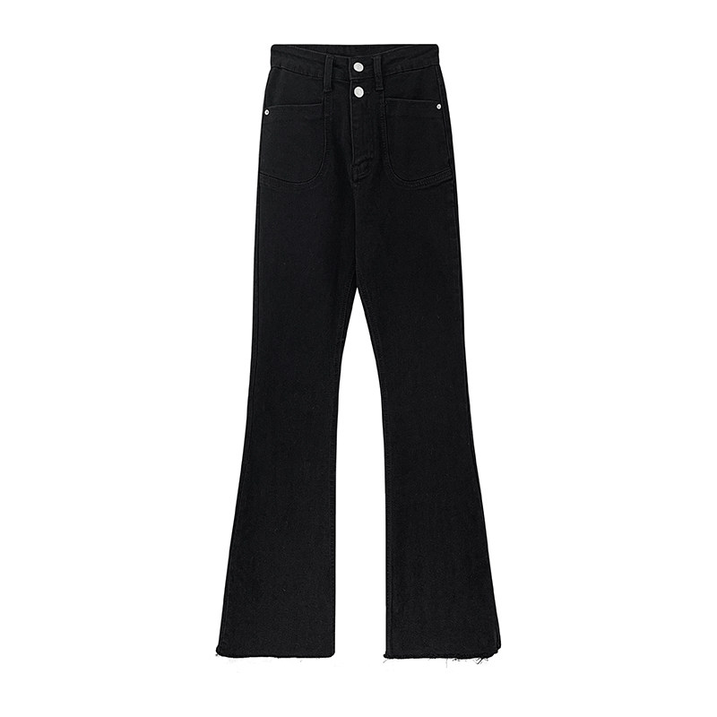 Race little lazy black straight jeans women's spring high-waisted loose stature was thin wide-legged micro-flare pants tide ins