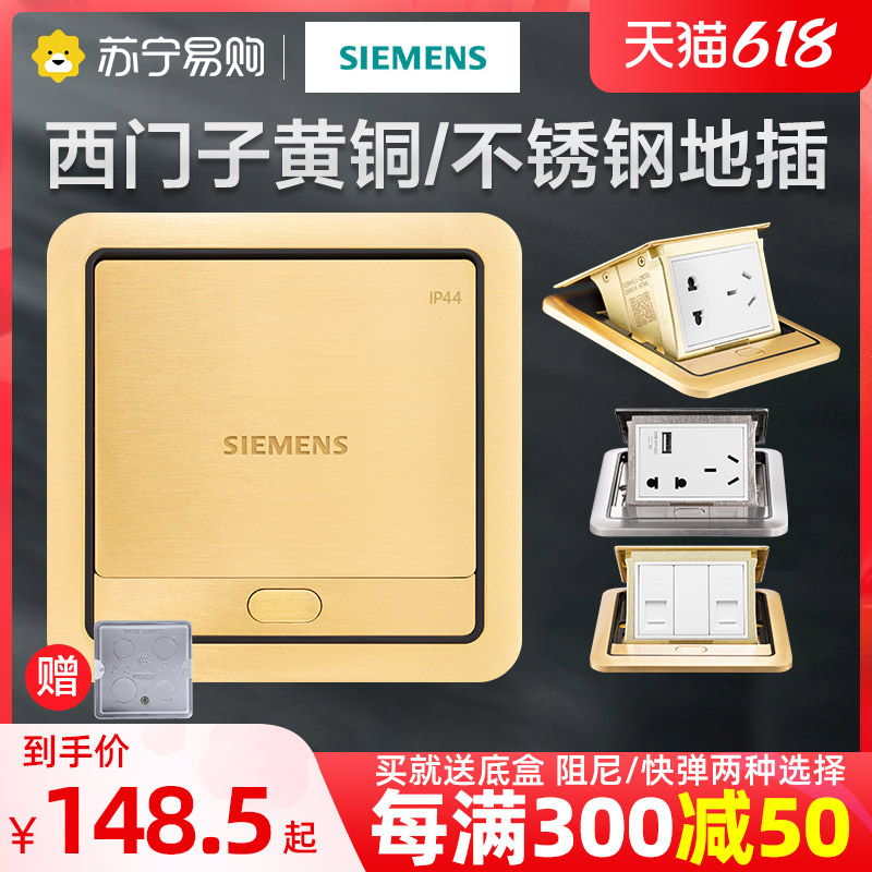 Siemens ground plug invisible five-hole ground socket surface all copper waterproof bouncing floor socket stainless steel 597