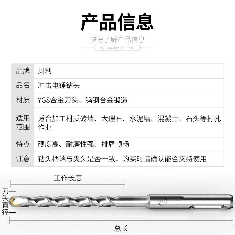 Electric hammer drill bit square handle impact drill bit lengthened drill bit 250mm2 meters four-pit concrete wall punching long drill bit