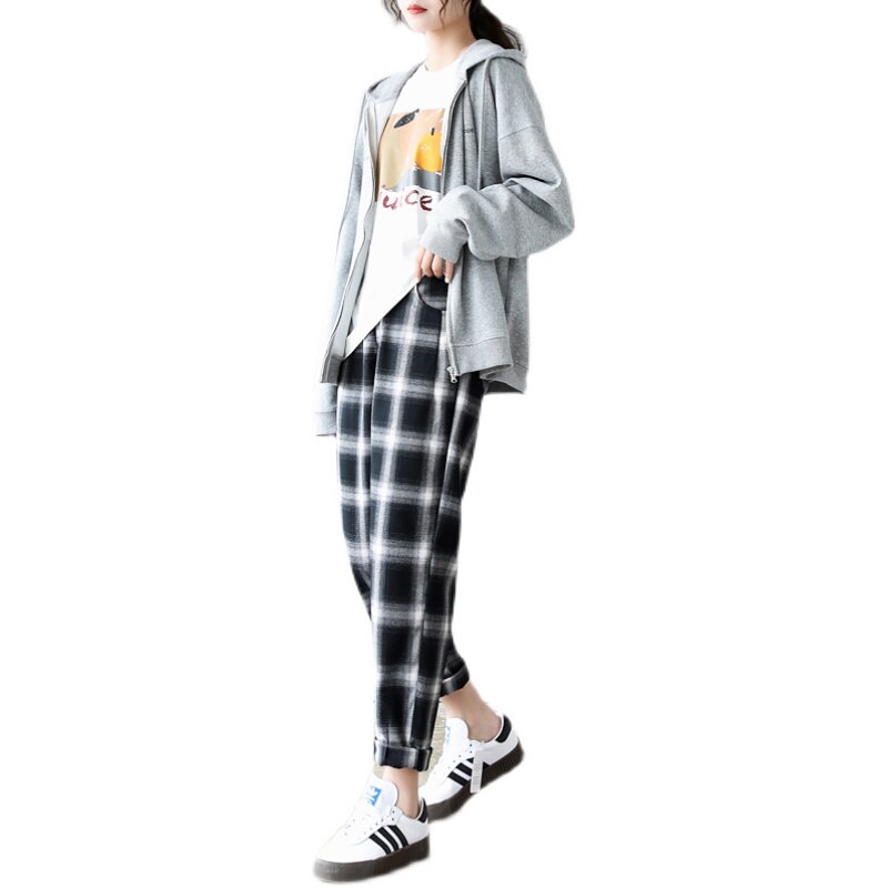 Lashabel High-waist Leisure Black and White Pants Women loose straight tube carrot carrot in spring and autumn