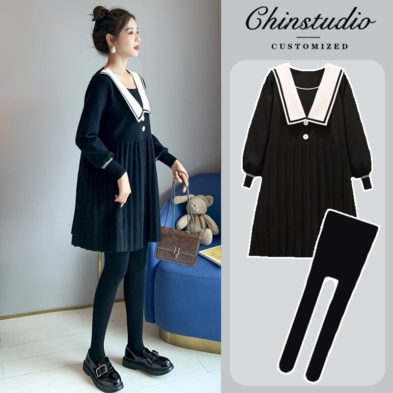 Maternity dress autumn and winter maternity dress 2022 new fashion suit two-piece maternity sweater skirt top
