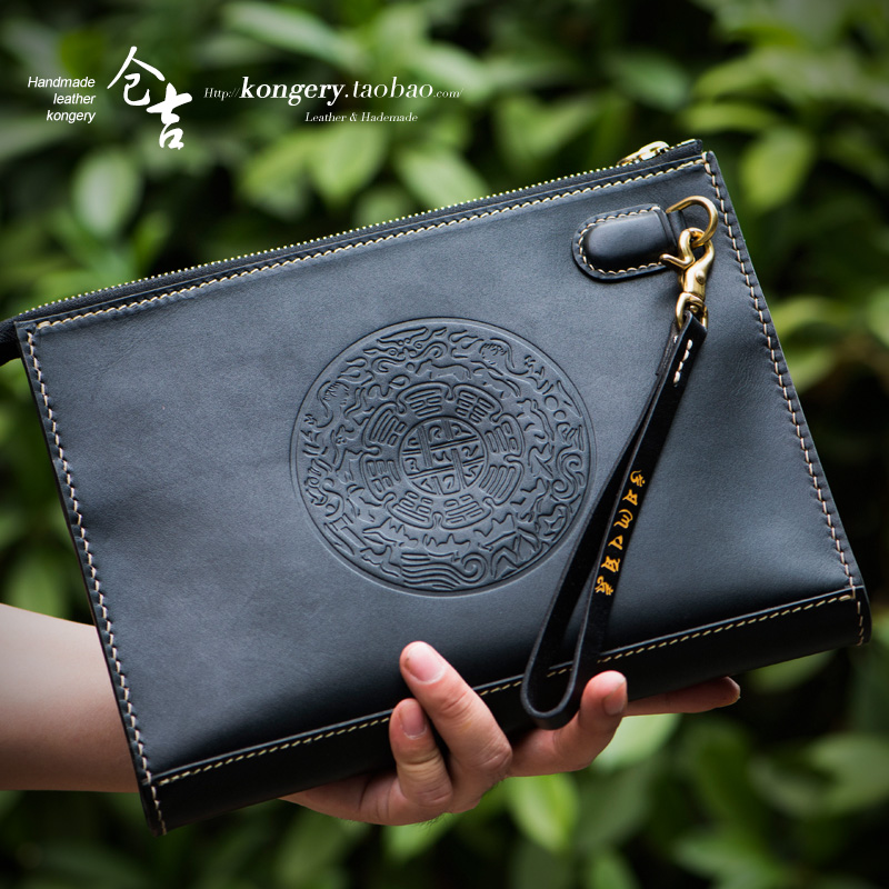 Buddha's One Nien Between the Leather Carved Envelope Bunkakura handmade male and female Chinese Wind Retro Genuine Leather Handbag purse