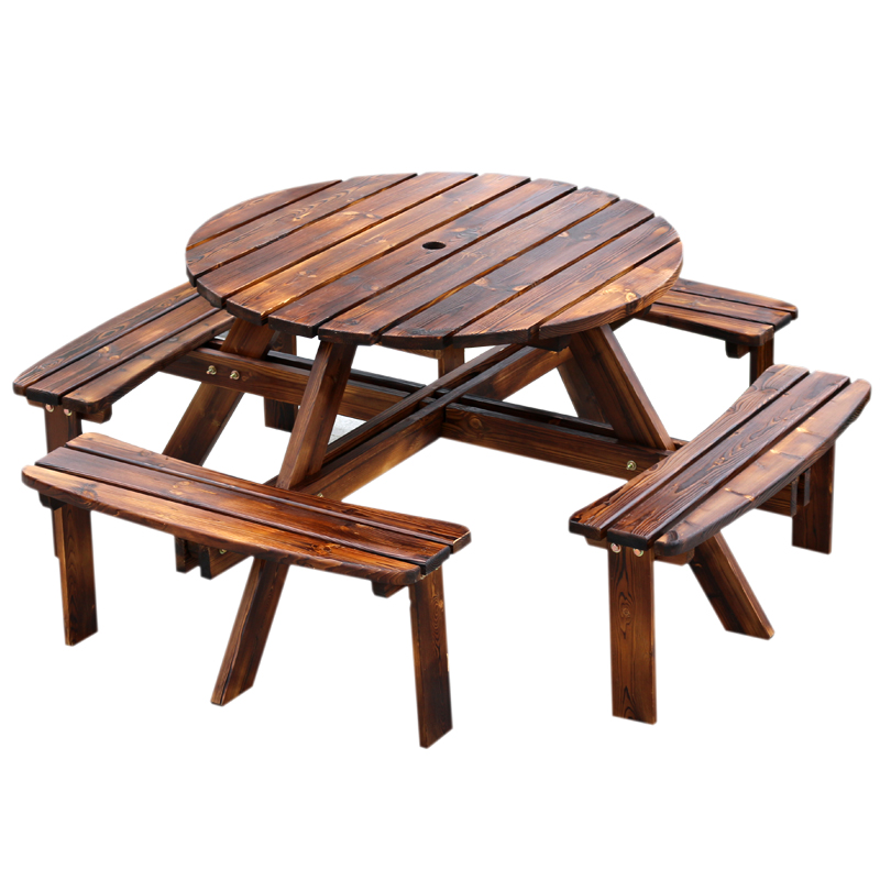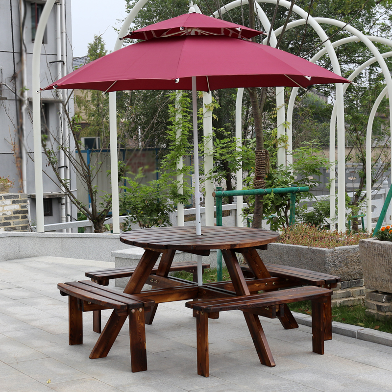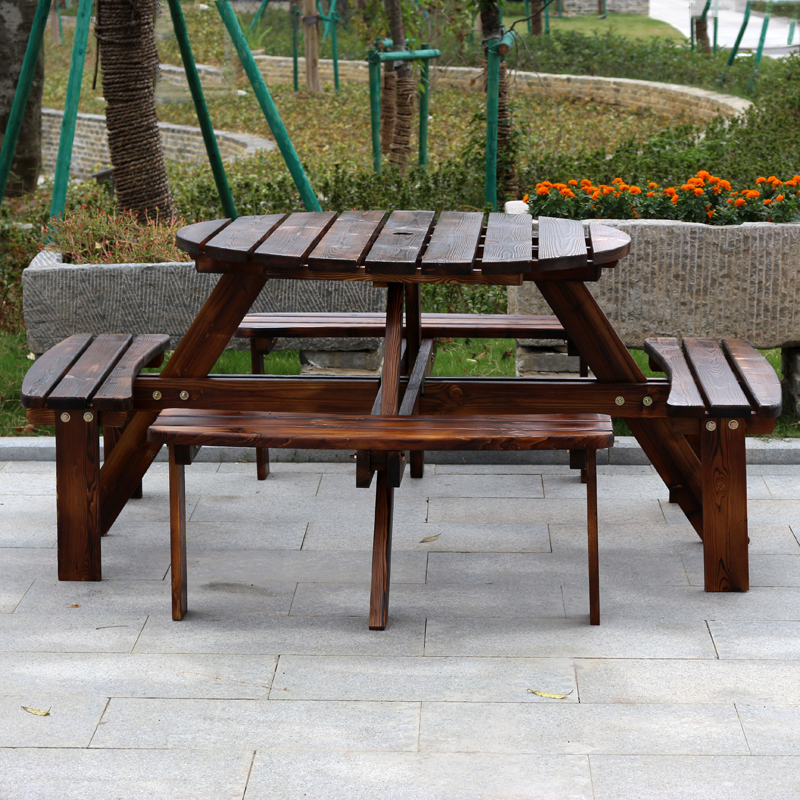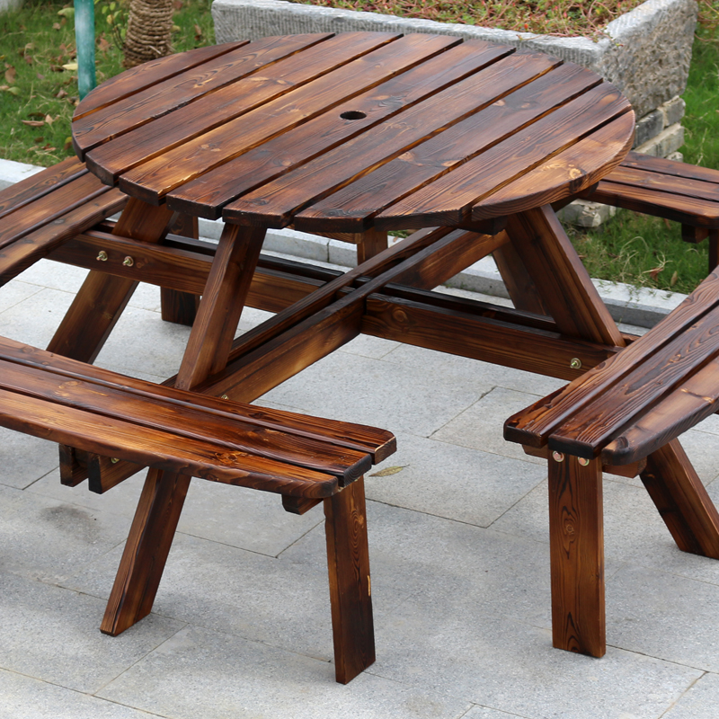 Outdoor balcony courtyard table and chair garden wooden furniture in one stool table carbonized solid wooden field round-core table