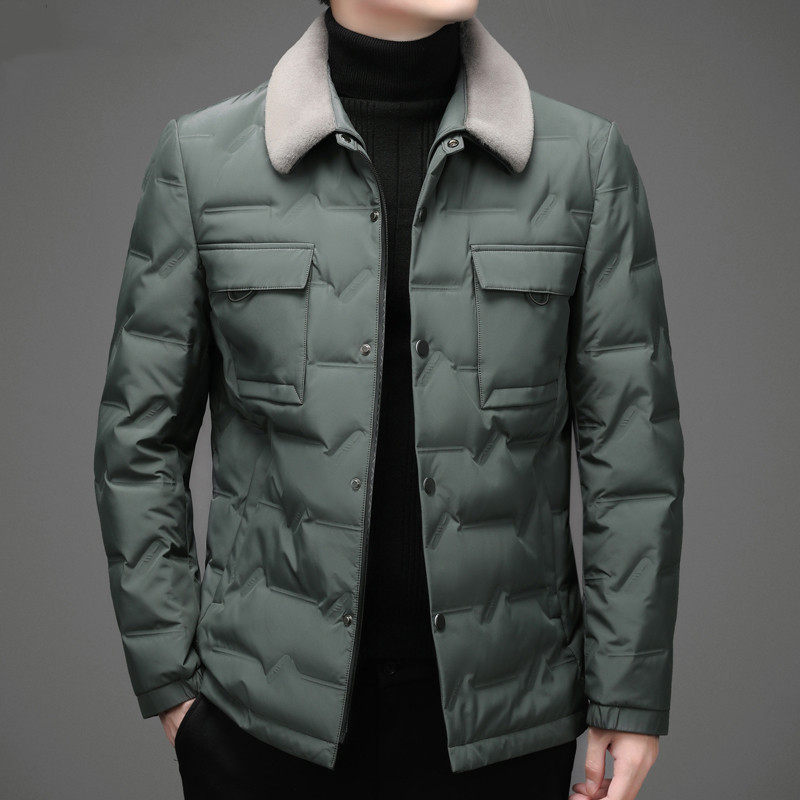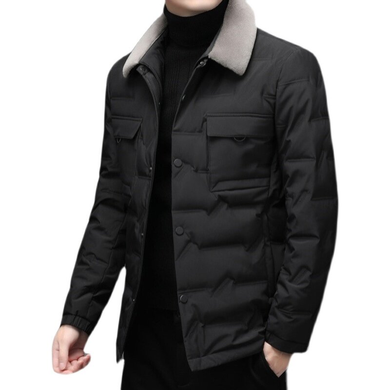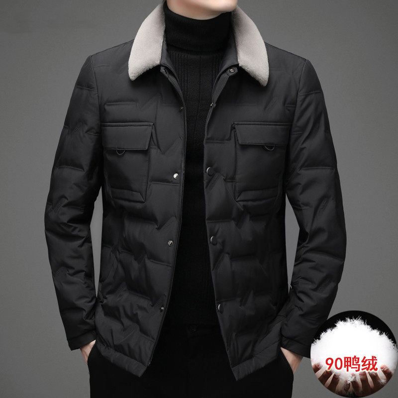 Luomeng high-end down jacket men's winter warm and thick middle-aged and elderly father men's short jacket with fur collar new