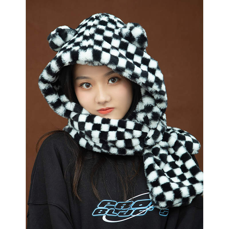 Small Bear Scarf Cap (Chessboard Lattice) Small Bear Scarf Cap (Dairy Cow Tattooed) Small Bear Scarf Cap (Blue BAO WEN) Small Bear Scarf Cap (Brown BAO WEN)