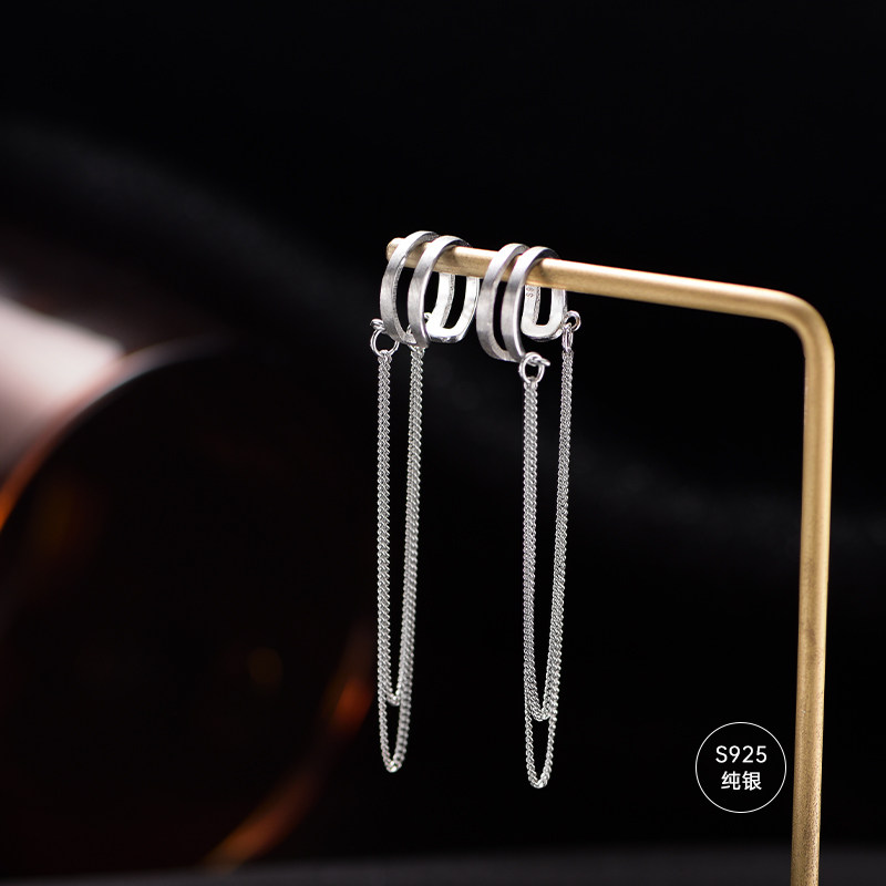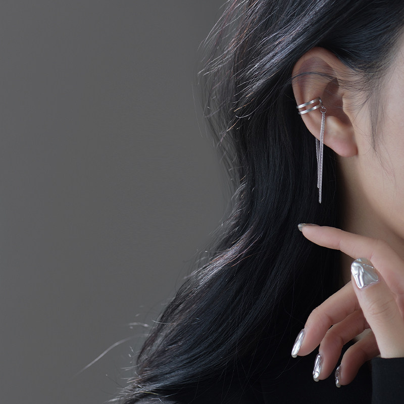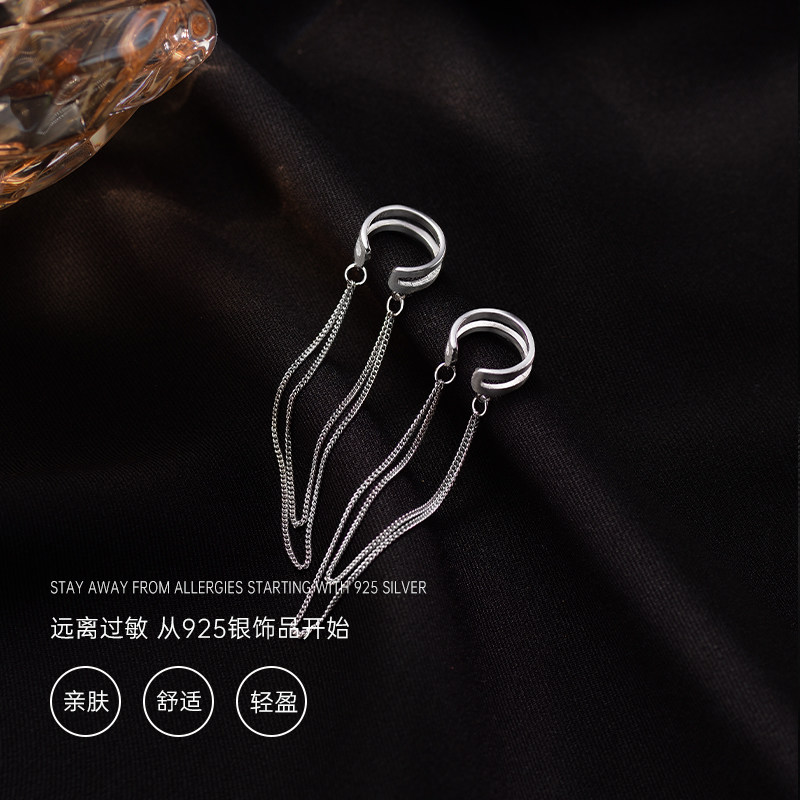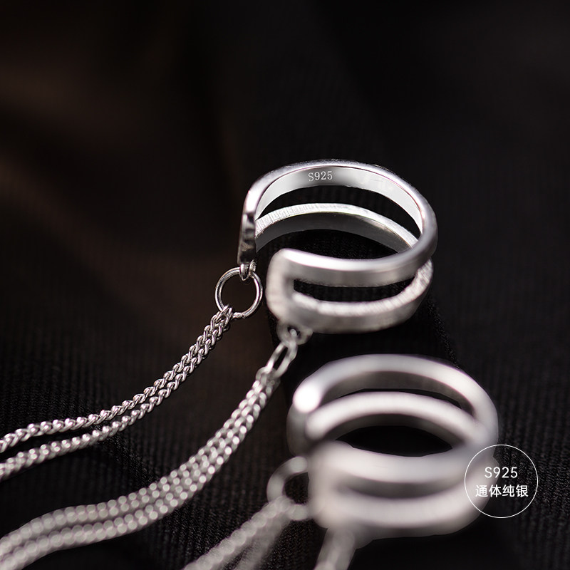 925 Pure Silver Ear Clip Woman Without Earthy Hole Lukewarm Wind Advanced Sensation Light Extravagant suear clip Ear Necklace one-piece Earrings
