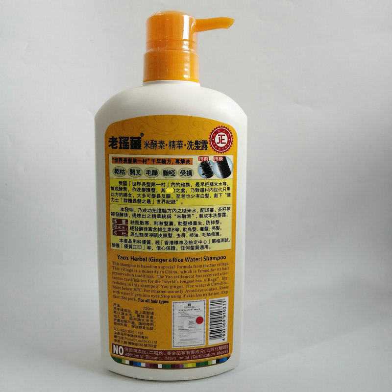 Hong Kong direct store, Yao Jiang Shampoo Ginger Wang rice enzyme essence shampoo disclosed 720ML