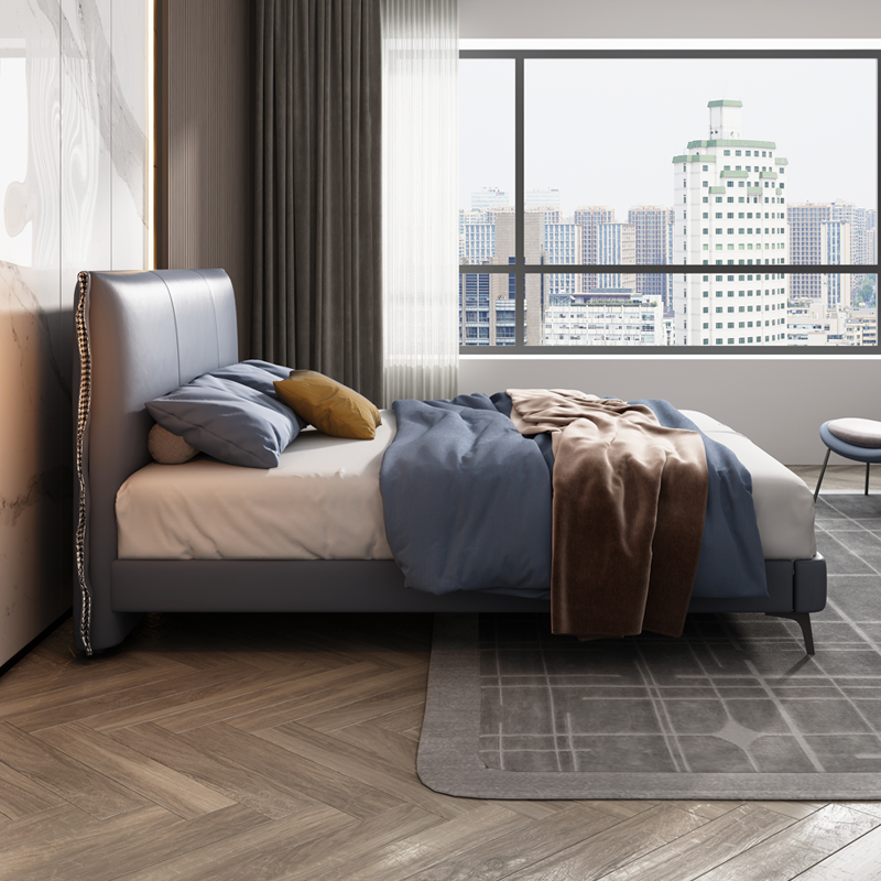 Napa Headlayer Cow Leather Bed (dark blue) Napa headlayer cow leather bed (light blue) single bed full solid wood bed head cabinet 1 single bed full solid wood bed head cabinet 2 single beds coconut palm mattress single bed