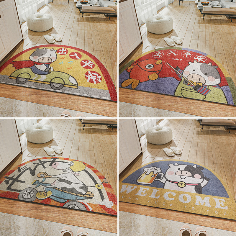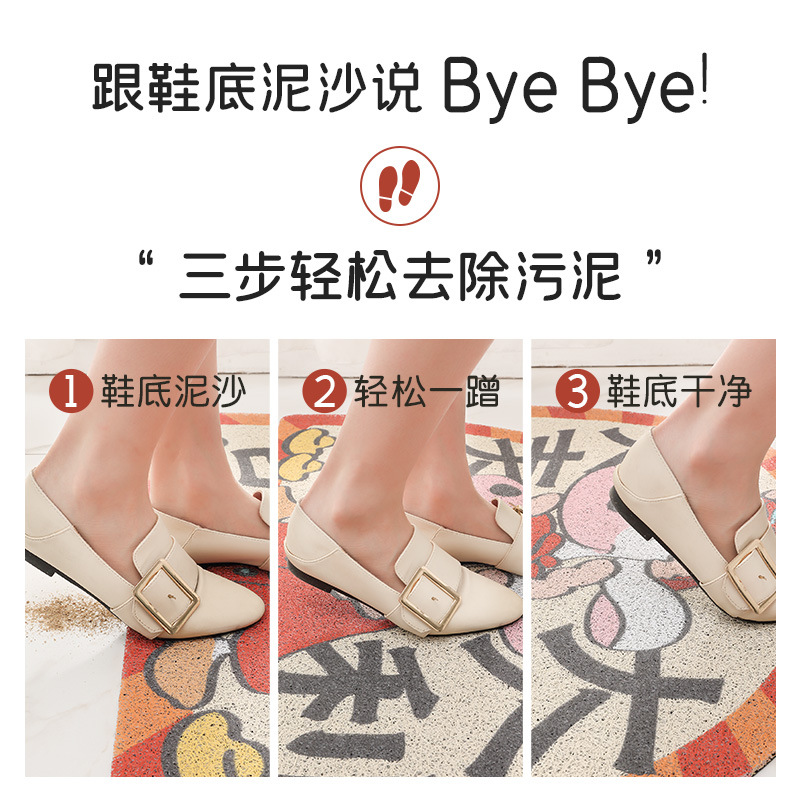 Red festive silk circle door mat door mat rubbing soil out and out of safe household entry door non-slip foot mat porch