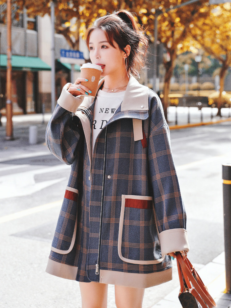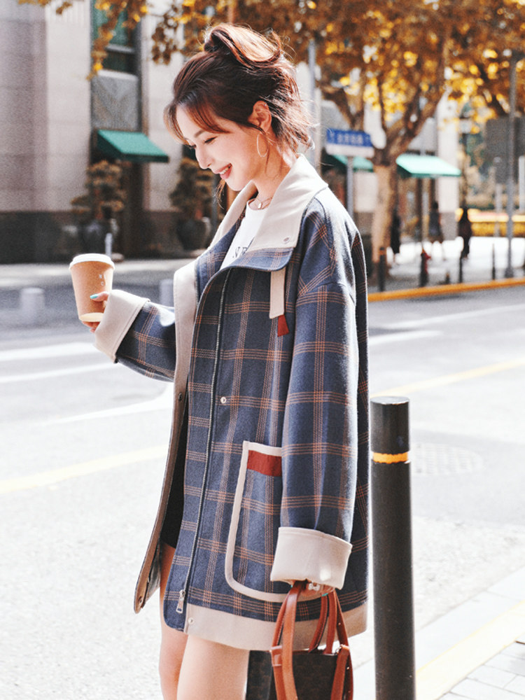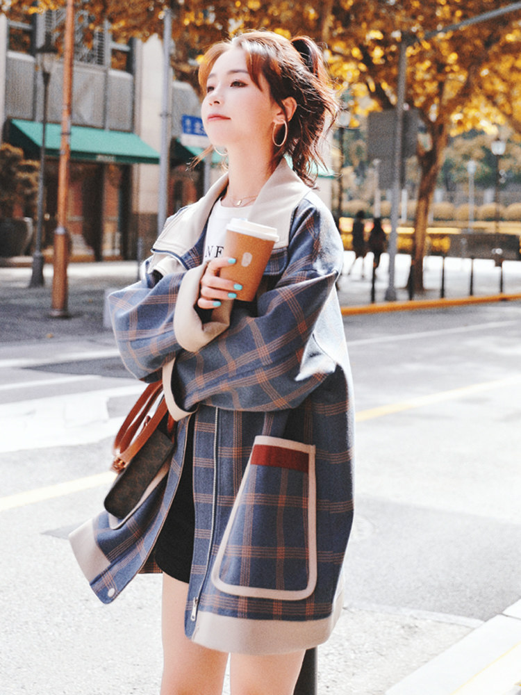 Sandro Queen2021 early autumn new popular plaid jacket female Hong Kong style retro wild casual short windbreaker