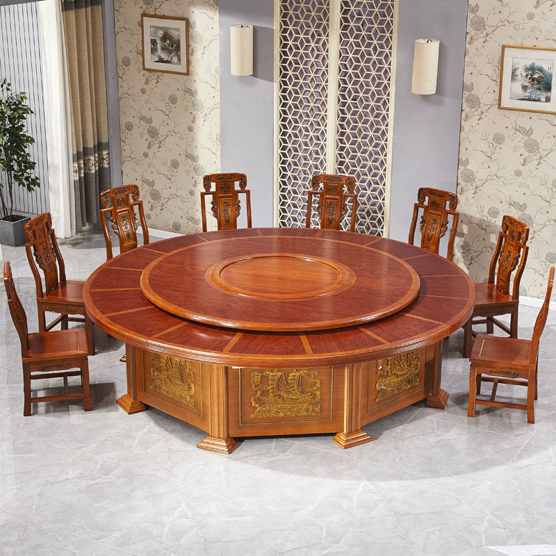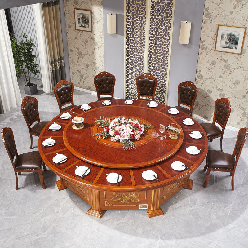 Hotel electric dining table solid wood large round table 20 people 30 people hotel dining room banquet rotating round with turntable new product