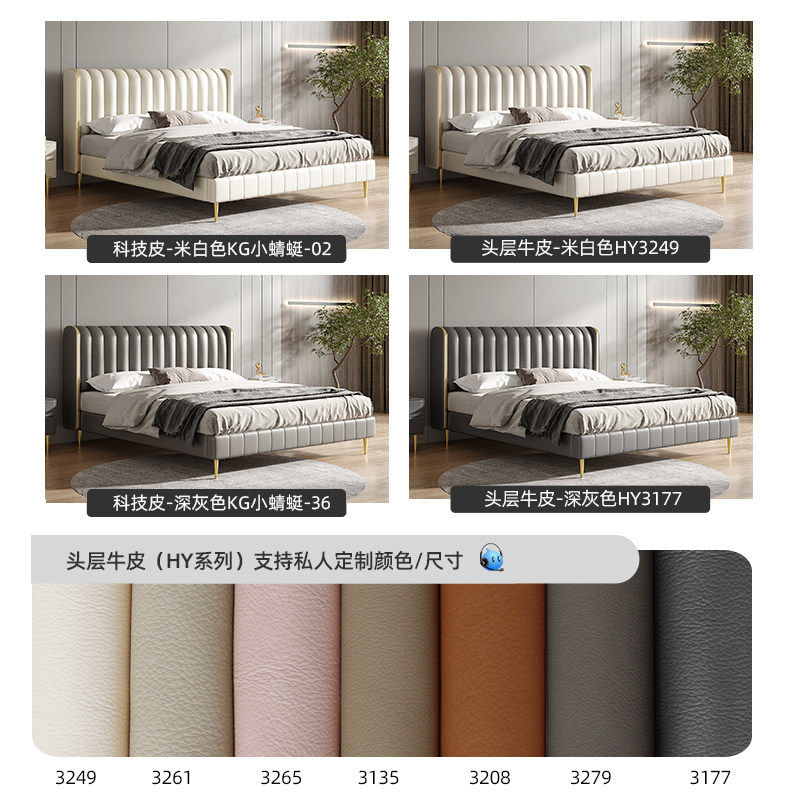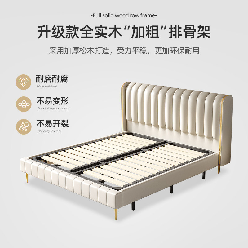 Dongxiong Nordic light luxury first layer cowhide bed master bedroom double bed 1 8 meters 1 5 wedding bed soft pack bed leather bed