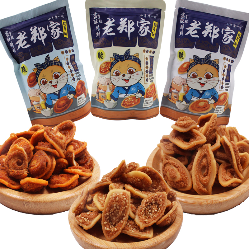 1 copy of 3 bagged old Zheng family cat ear crisp 80 back nostalgic casual snacks original flavor spicy sesame flavor crisp snack