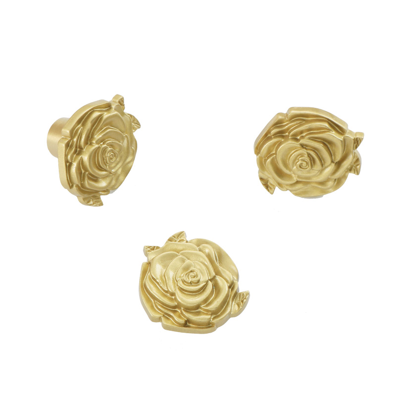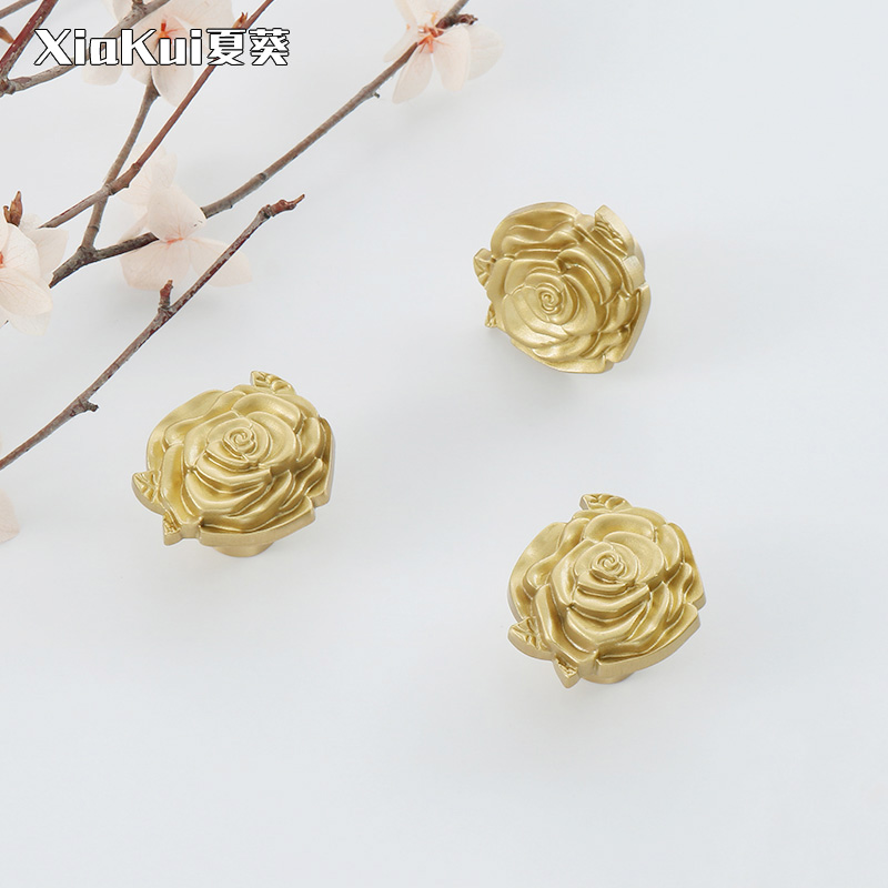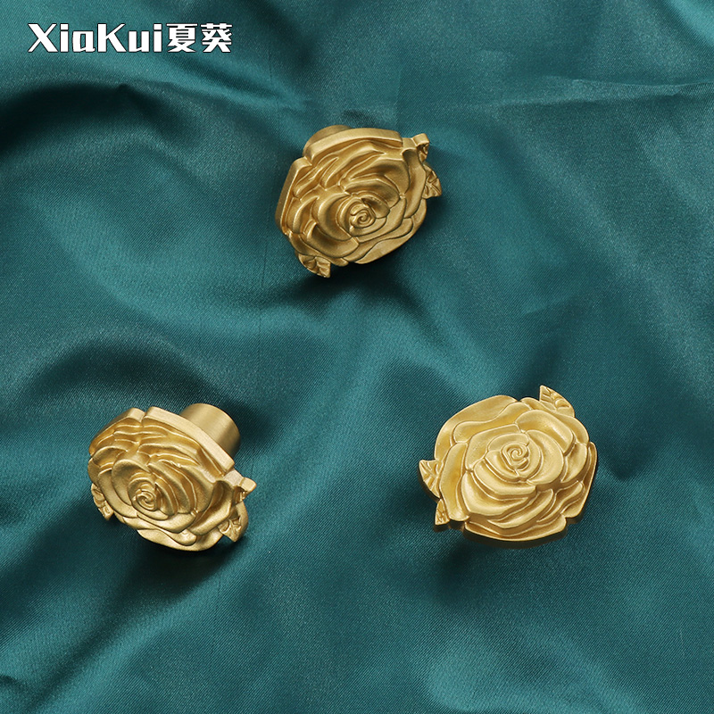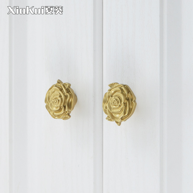 Light and luxurious Nordic brass wardrobe pull handle rose French style field pure copper overall closet door drawer single-hole handle full copper