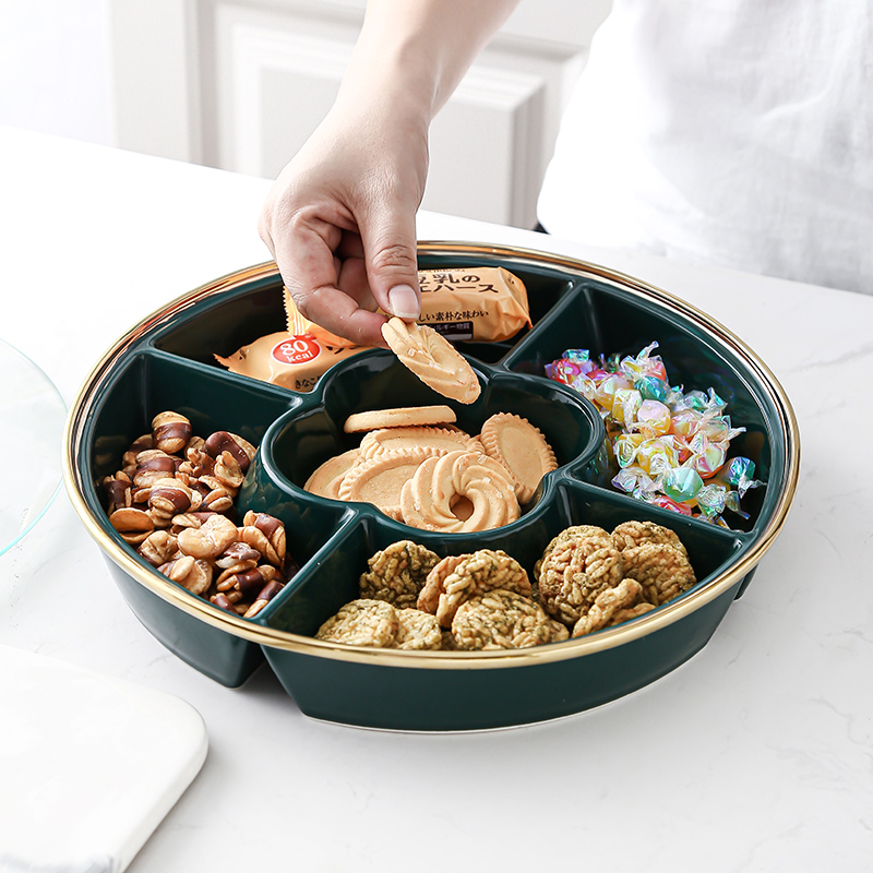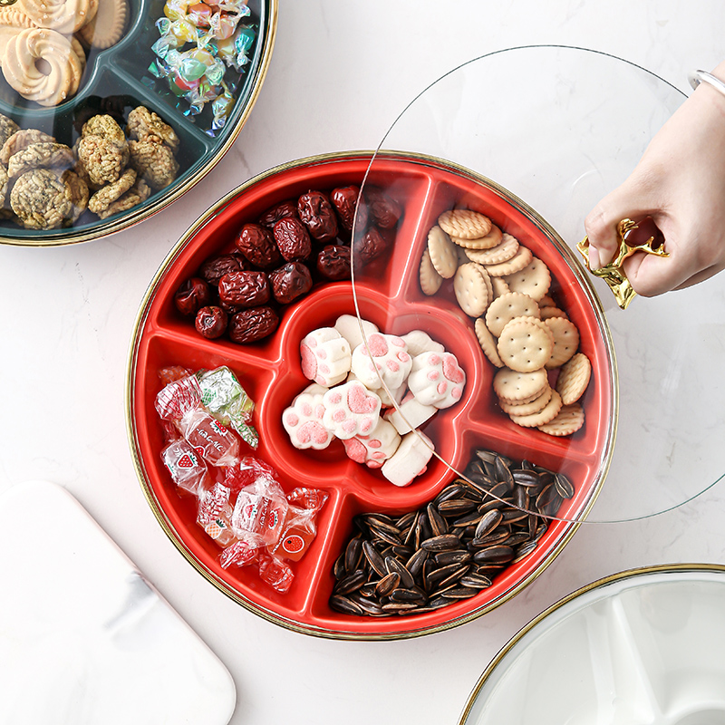 Ceramic sub-lattice with lid dry fruit pan upscale light lavish Nordic Wind Home Living room Tea Table Nut Candy Box Dry Fruit Box