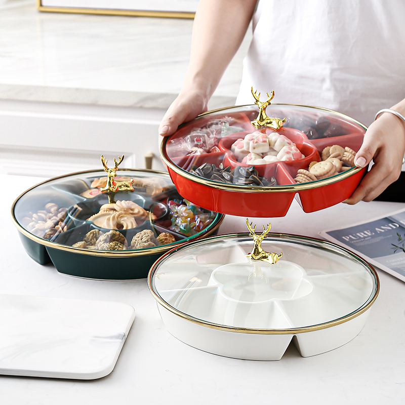 Ceramic 5 g fruit tray matching glass cover white ceramic 5 g fruit tray matching glass cover green ceramic 5 g fruit tray with glass cover red