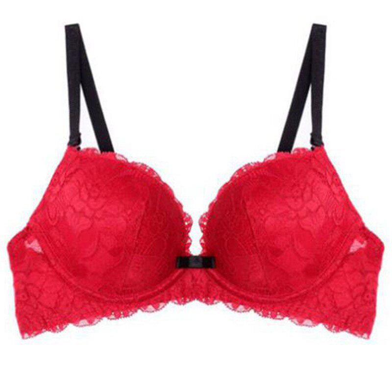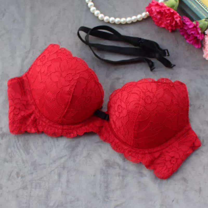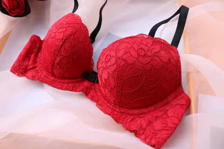 European and American ladies red underwear Sexy bra lace detachable shoulder strap upper and lower thick and small chest for large gathering of bra