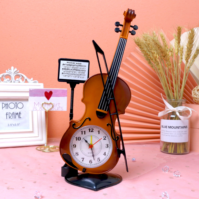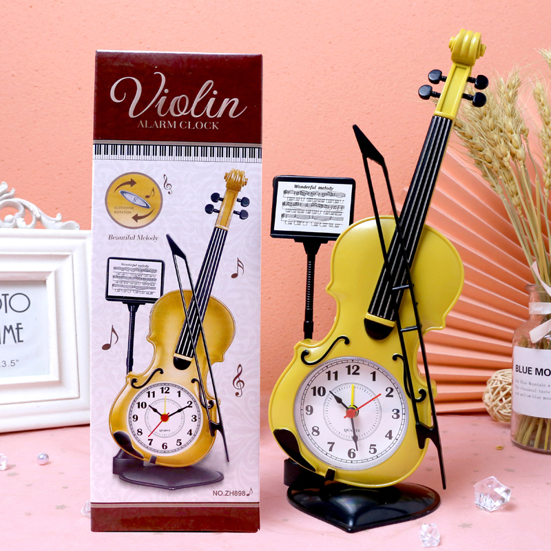 European Classical Violin Model Table Clock Creative Violin Office Desktop Decoration Children's Student Alarm Clock - Taobao