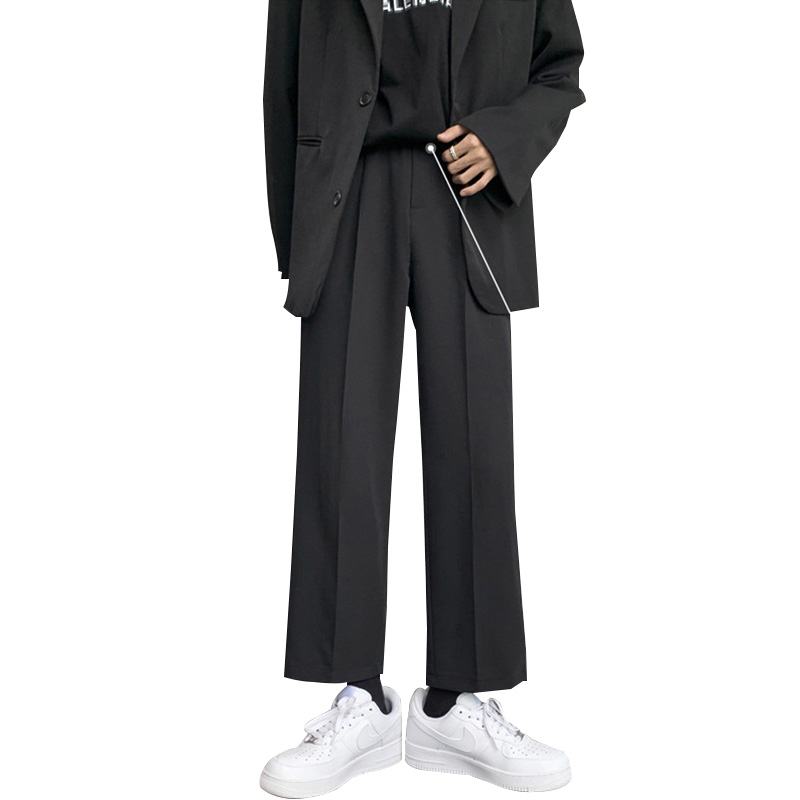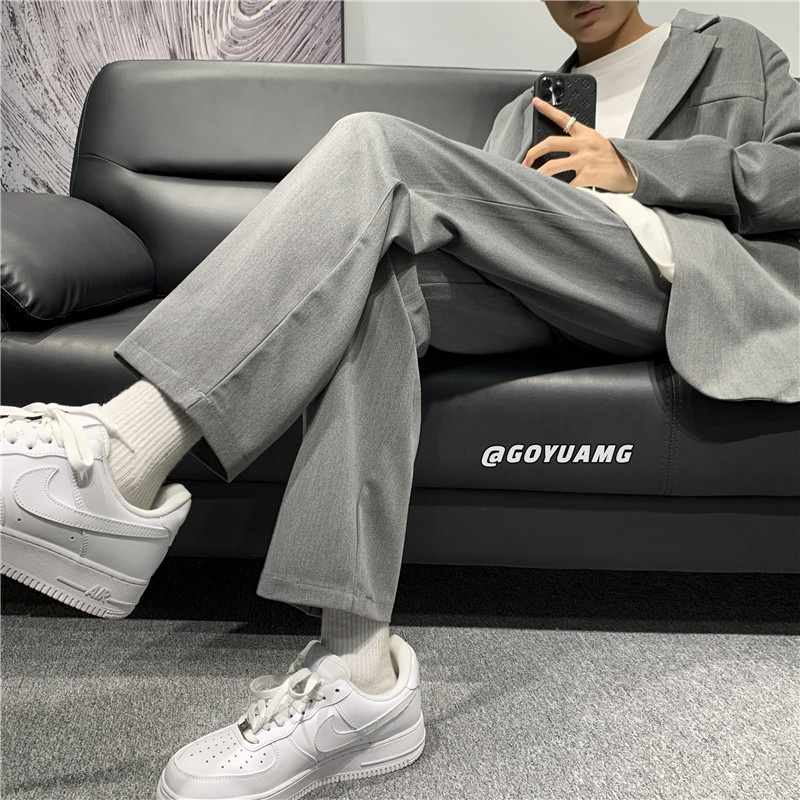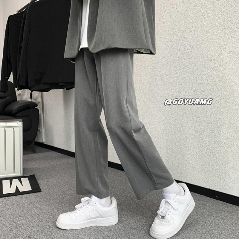Dendness small trousers men's spring and autumn Hong Kong style Japanese trend High Street loose straight tube casual Ruffian suit pants men