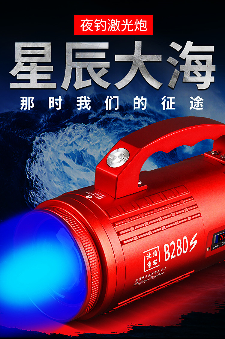 Fishing light laser cannon Beijing vertex B280s night fishing light high power excess black pit fishing raft fishing light table fishing