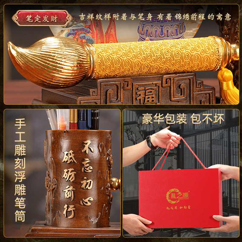 BJ Pen Ding Jiangshan Ping An Buckle Stationery Table (Heaven rewards those who work hard) comes with exquisite brocade box packaging