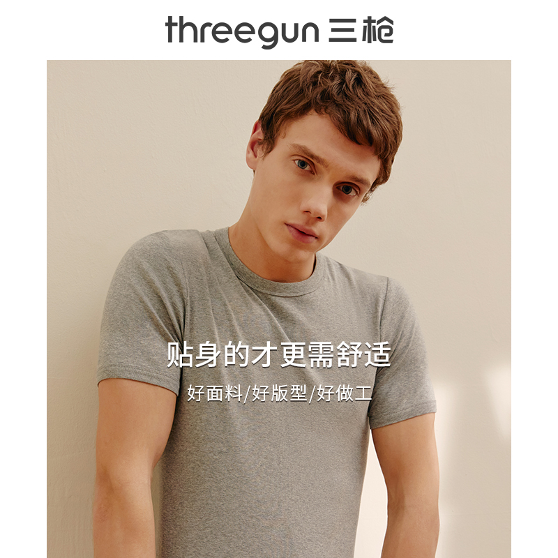 Three-gun short sleeve men's spring and summer Xinjiang pure cotton round collar breathable underwear for bottom men's T-shirt 2 pieces of clothing]