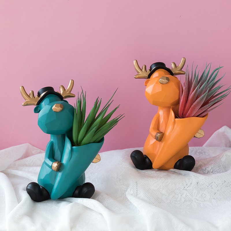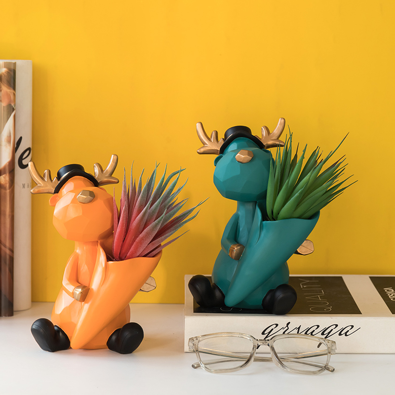 Mr. Deer vase (orange) without the flower deer Mr. vase (ink green) without the flower deer Mr. vase (orange) with flower deer Mr. vase Mr. vase (ink green) with flower