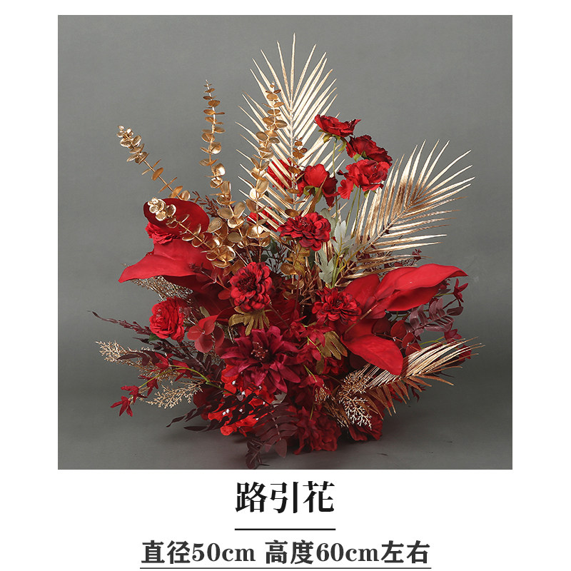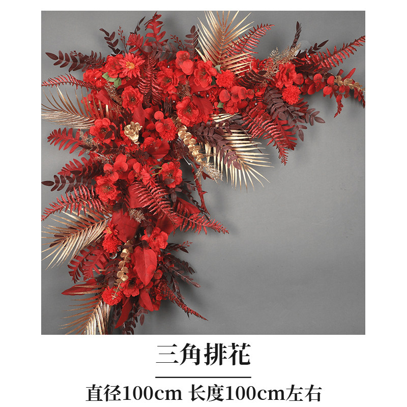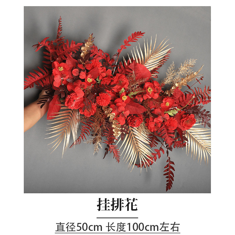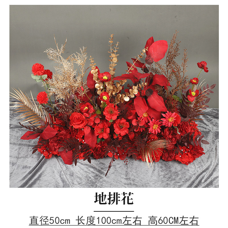 Wedding Celebration Stage Chinese Wedding Floral Greeting Guest Area Ttai Decorated Red Gold Color Terrace Floral Bouquet Flower Platoon