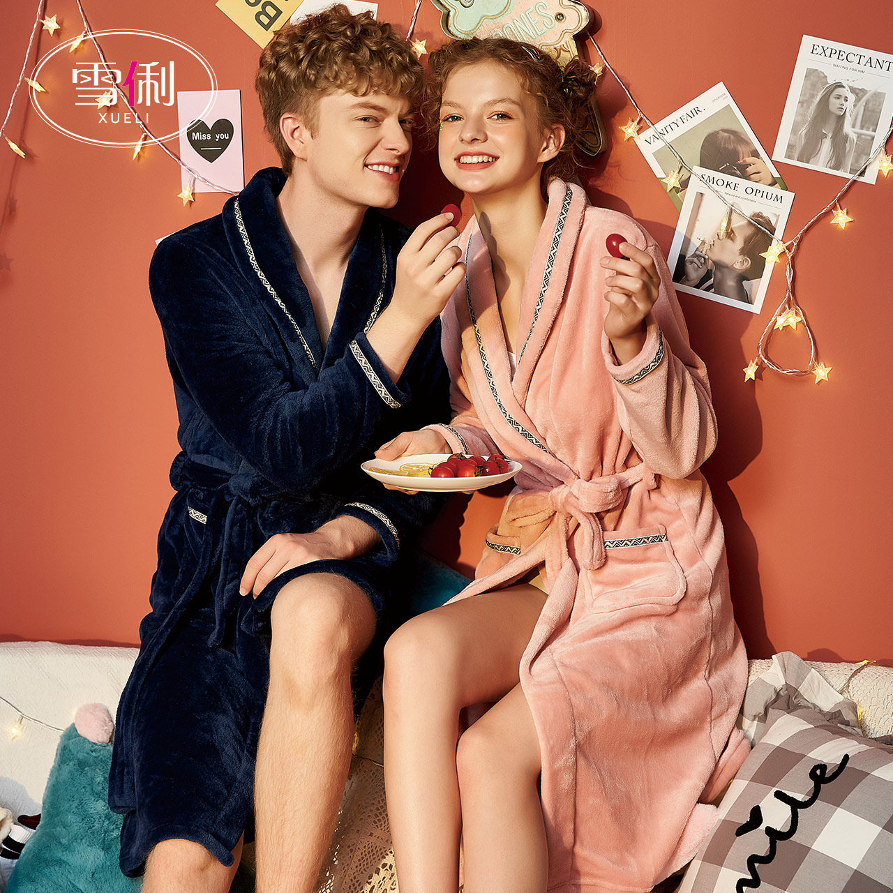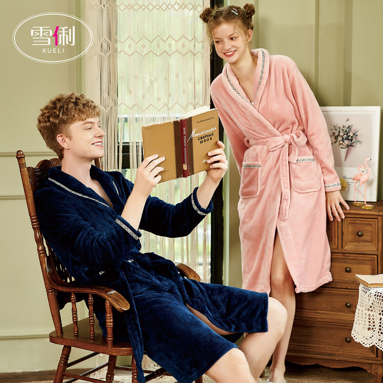 Snow Li lovers nightgown autumn winter pajamas ladies coral velvet bathrobe men's housewear warm flannel spring and autumn thick