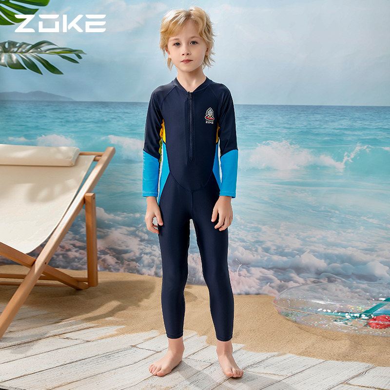 zoke children's swimsuit girl one-piece long sleeve professional sun protection warm quick-dry boy middle and big child swimsuit winter