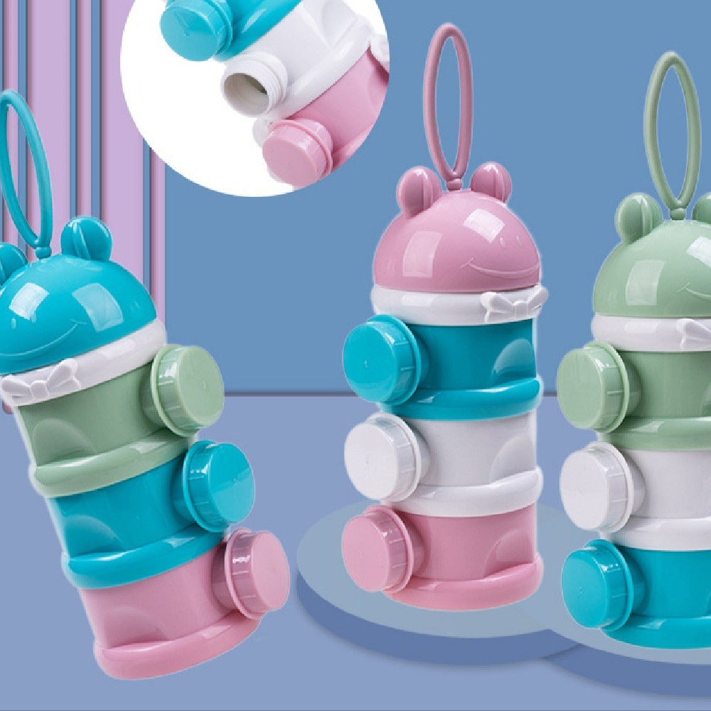 Baby cartoon side opening three-layer portable out-packed milk powder box thickened and sealed large-capacity food storage box