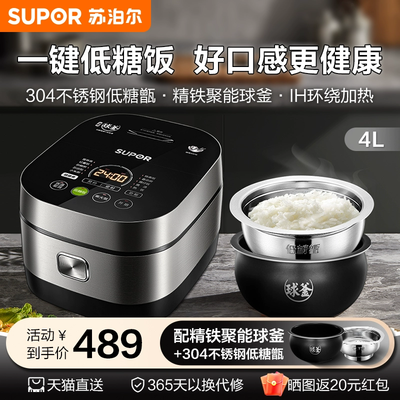 Subpoir Low Sugar Rice Cooker Home Rice Broth Separation Drain Rice 4L Liter Ball Kettle IH Electric Cooker Smart Flagship Store-Taobao