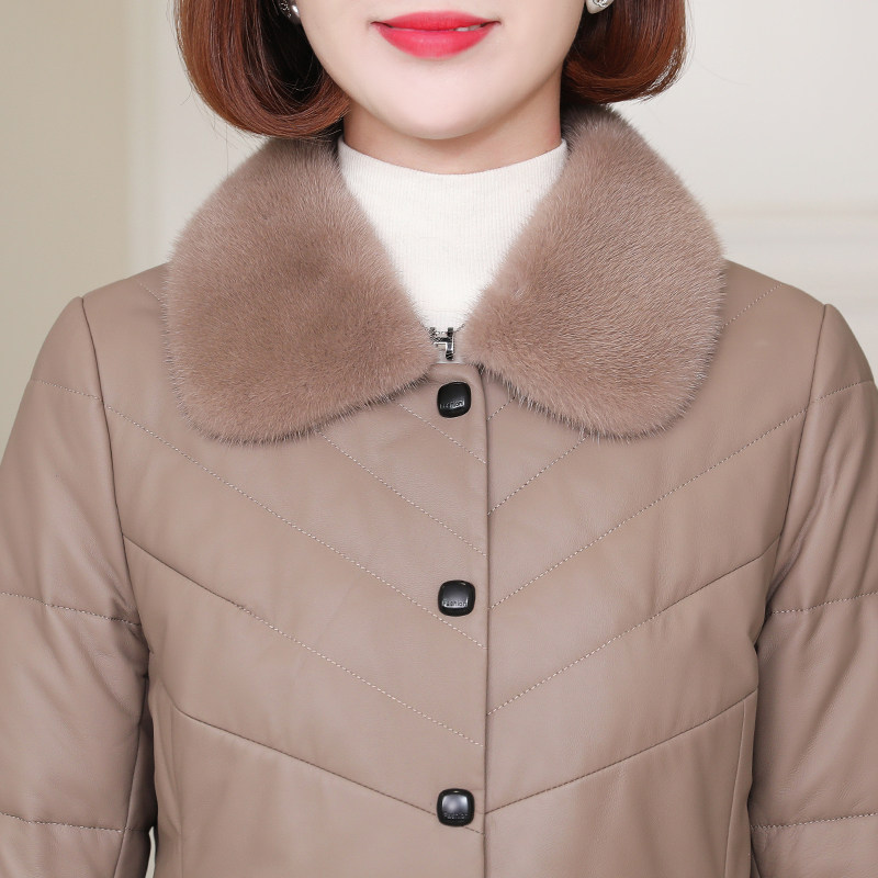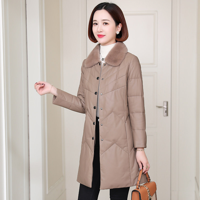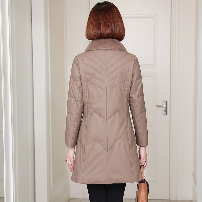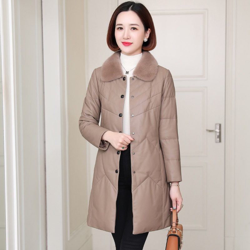 zqqz genuine leather down jacket woman medium long version 2021 winter new ferret wool collar sheep leather clothing jacket 2187