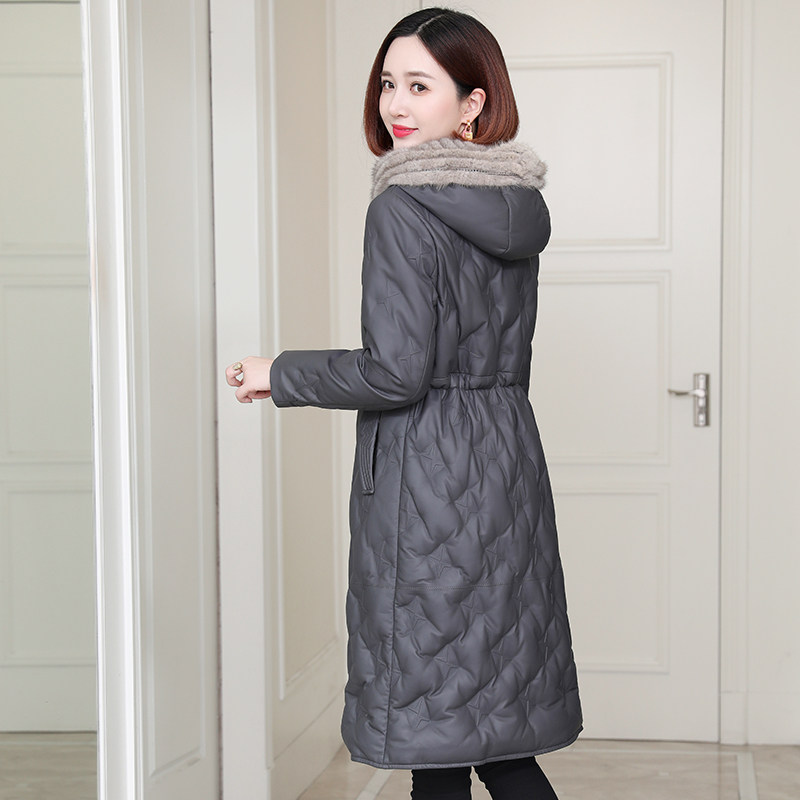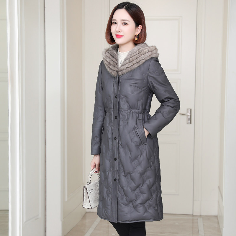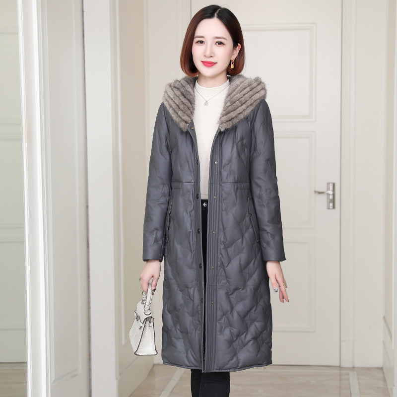 zqqz genuine leather down jacket woman medium long version 2021 new fashion fox fur collar sheep leather clothing jacket D176