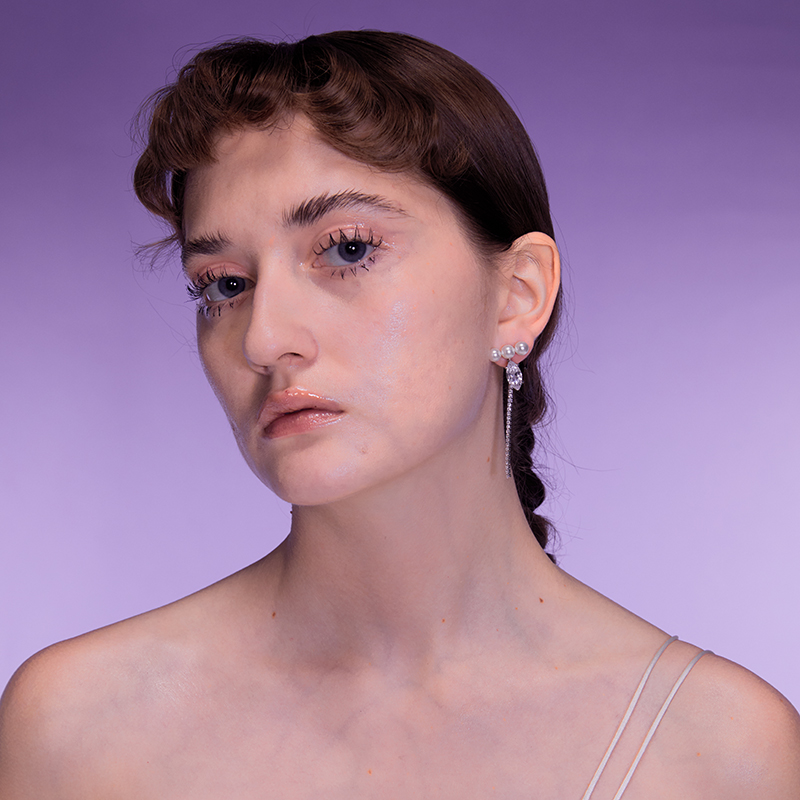 Tavern Pearl Zircon Chain Asymmetrical Flow Su Earring Feminine Fashion Autumn and Winter Ear Decoration Original temperament