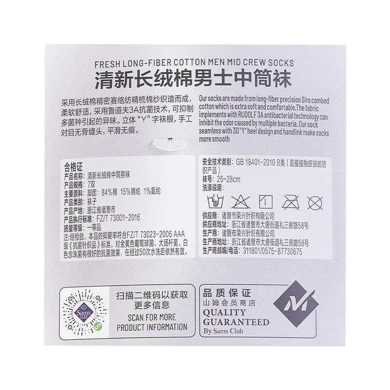 Sam domestic Members Mark fresh long - dune cotton male socks 7 pairs of medium - tube male socks base color