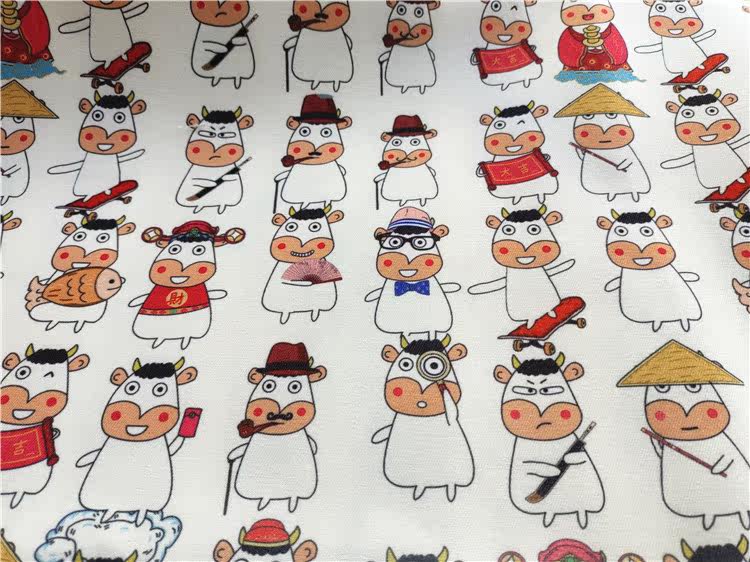 Cartoon Fabric Fine Canvas Printed Handmade Diy Fabric Sofa Cover Fabric Bag Dorm Room Table Cloth Small Fat Cow White
