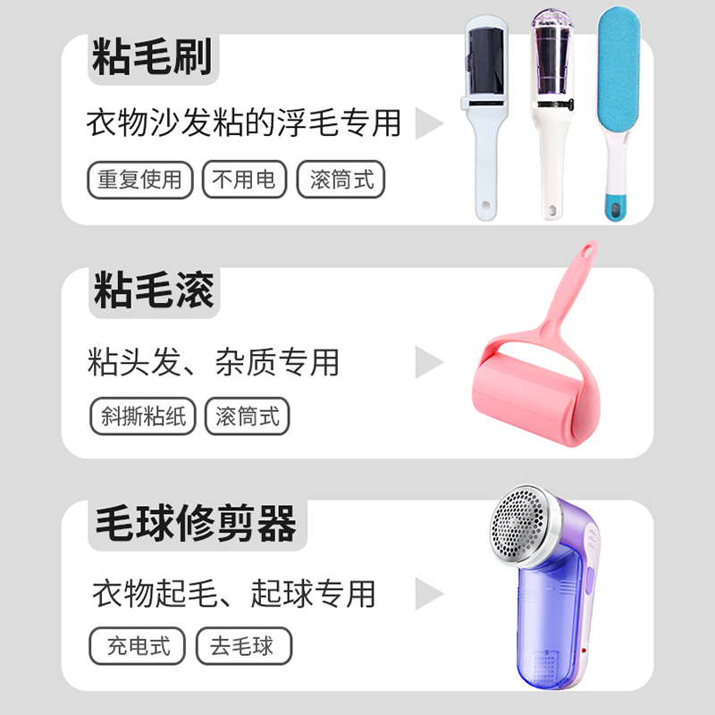 A Stick hair brush B Stick Hair Brush (recommended) hair-ball trimmer obliquely-torn adhesive hair roll 1 handle 5 rolls sheet sofa with double face brush A fur ball trimmer with hair-ball trimmer stick hair roll 1 handle 5 roll